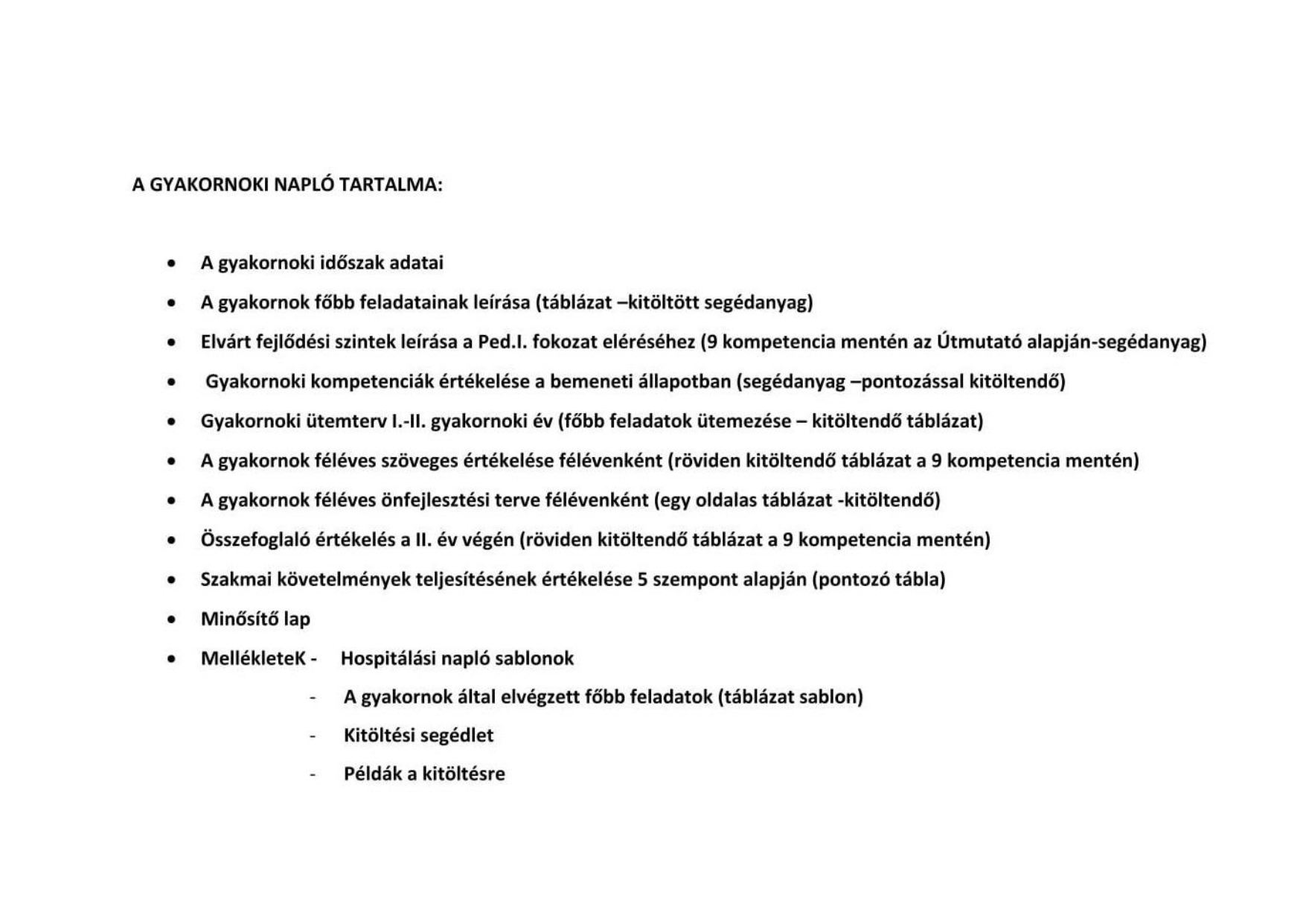 tartalmazza a kötelező elemeket, valamint a mentor és gyakornok közös munkáját