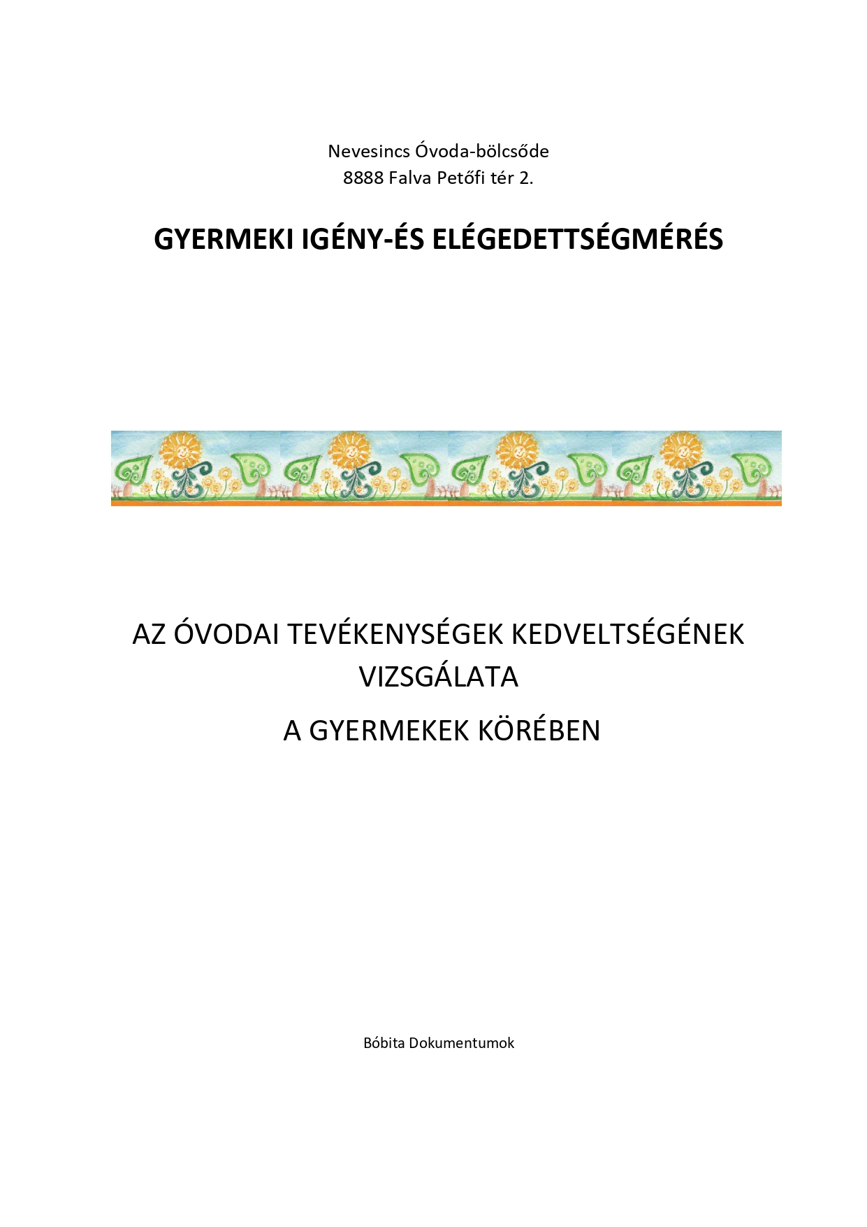 Gyermeki igény-és elégedettségmérés dokumentumcsomag