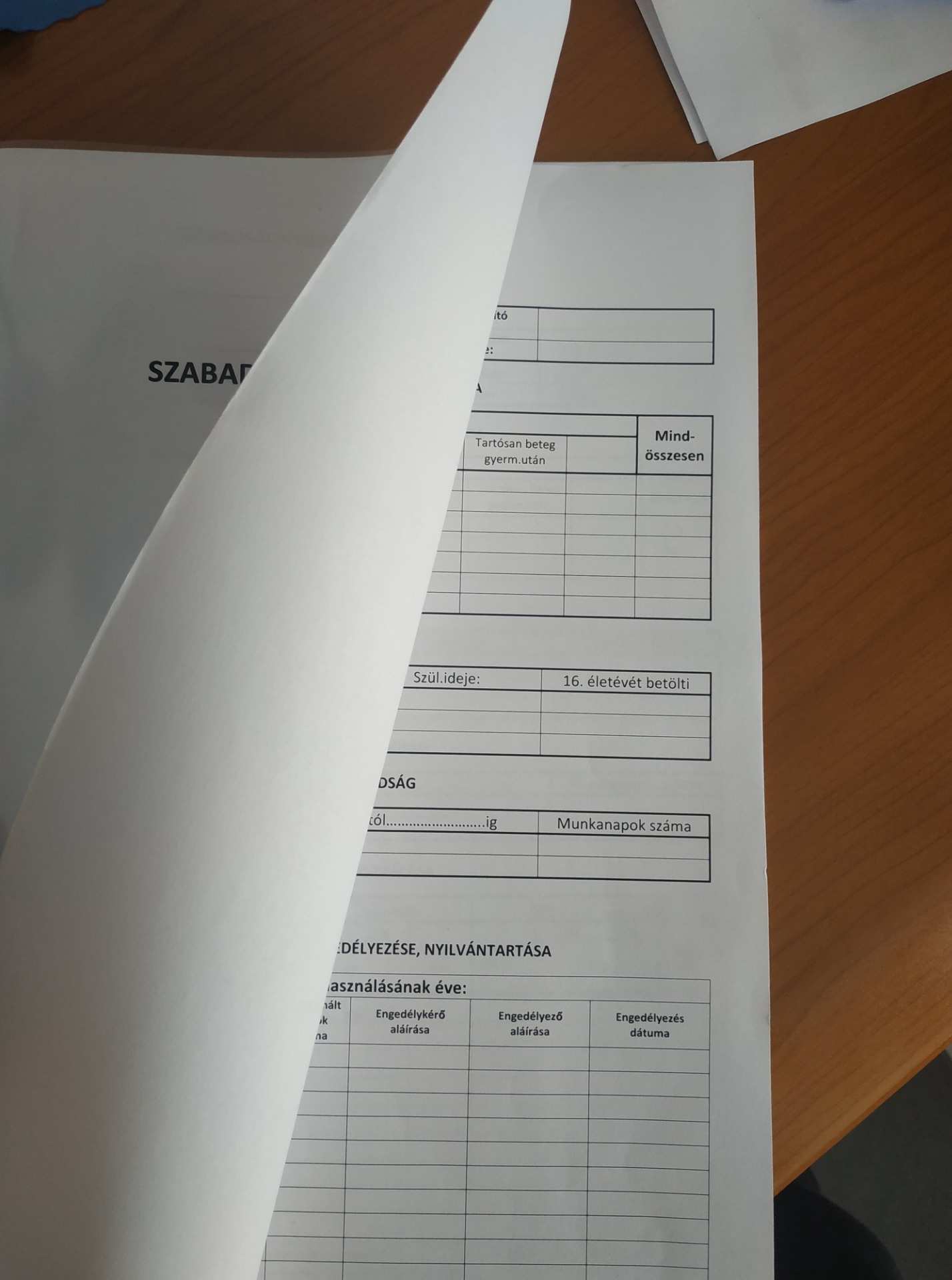 Szabadságnyilvántartás - sárga engedélytömb nélkül!